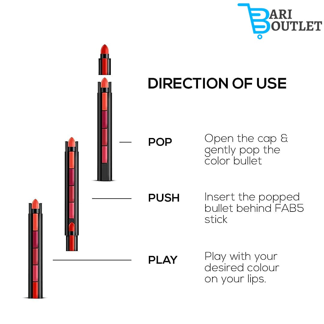 One lipstick, five stunning colors! From bold reds to subtle nudes, find the perfect shade for every mood.